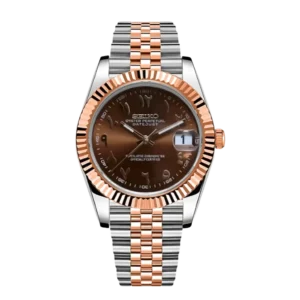 Inspirée des reflets chauds du sable et du soleil, la Seiko Mod Datejust – Chiffres Arabes – Or Jaune du Désert est une montre d’exception, pensée pour ceux qui aiment les pièces à la fois luxueuses, expressives et raffinées.