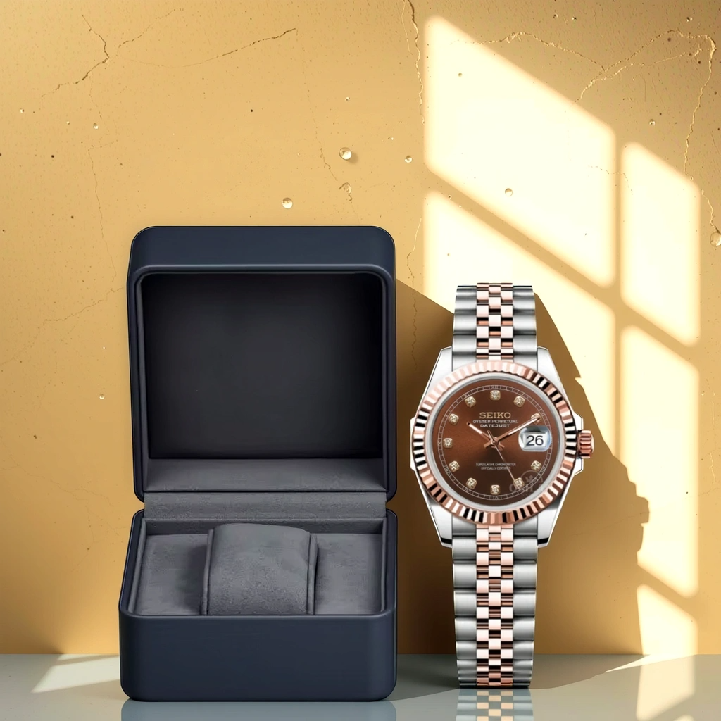 Soyez le premier à laisser votre avis sur “Seiko Mod Datejust Ultra Fine 26mm – NH05 – Bicolore Or Rose/Acier – Cadran Marron Diamanté – Verre Saphir”